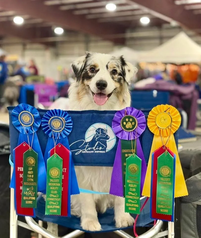 As a second generation Australian Shepherd breeder, my passion for this breed began young. Growing up with Aussies around was a privilege - some of my fondest childhood memories involve the whelping and raising of litters. My mom and I now live separately but co-breed and co-own our dogs together under both her kennel name (Vinelake) and mine (Studio).